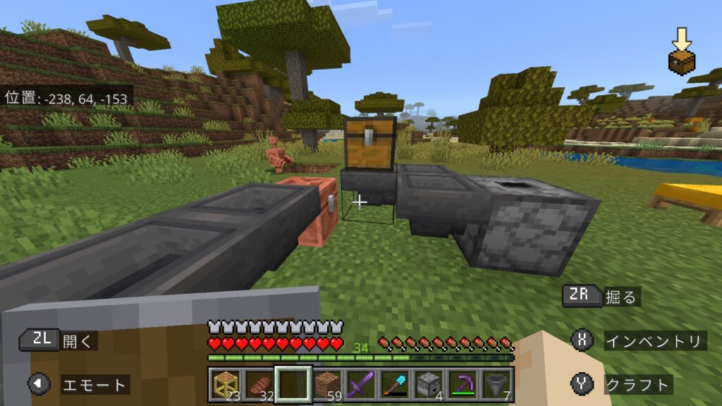 ホッパーの上にチェストを設置します。