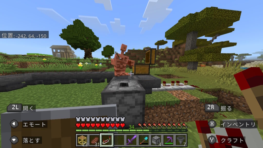 今回は1.21.90アップデートで追加された銅ゴーレムでお店を作ります!