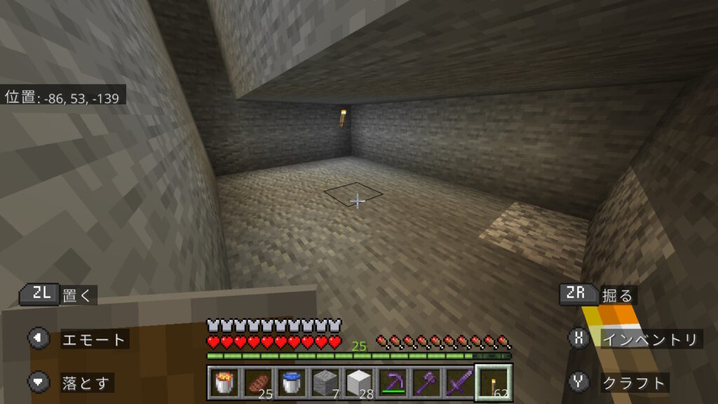まず高さ2マスで5×7マスの部屋を掘ります。