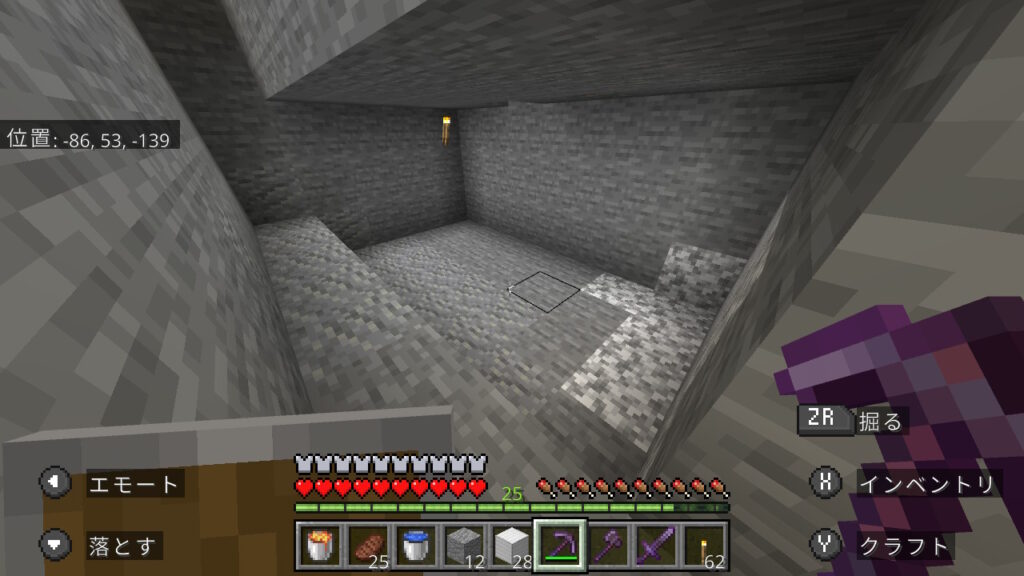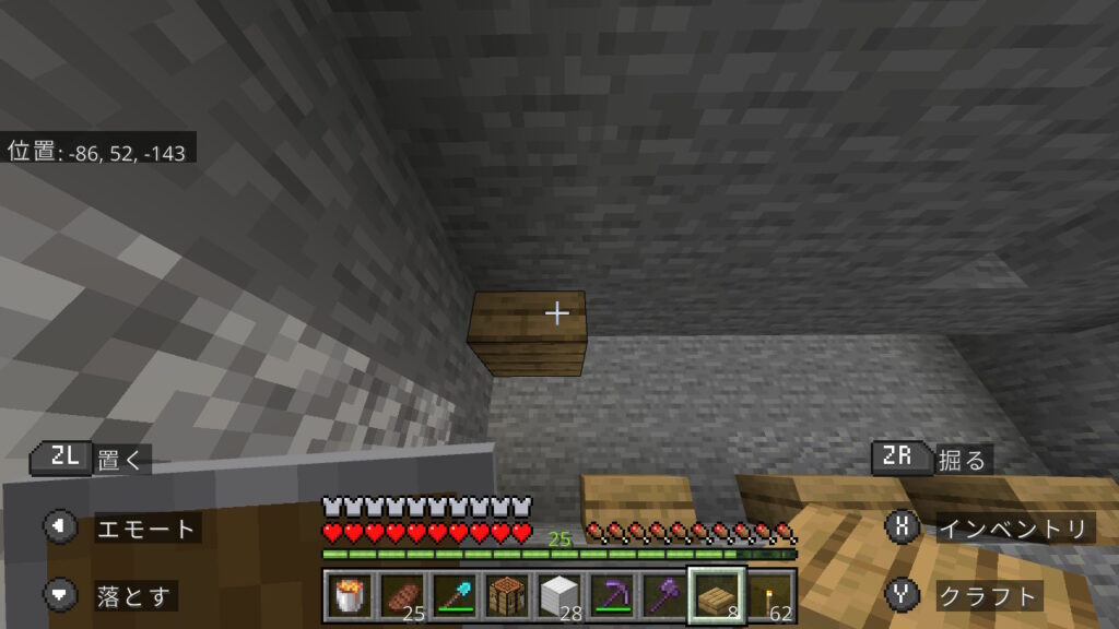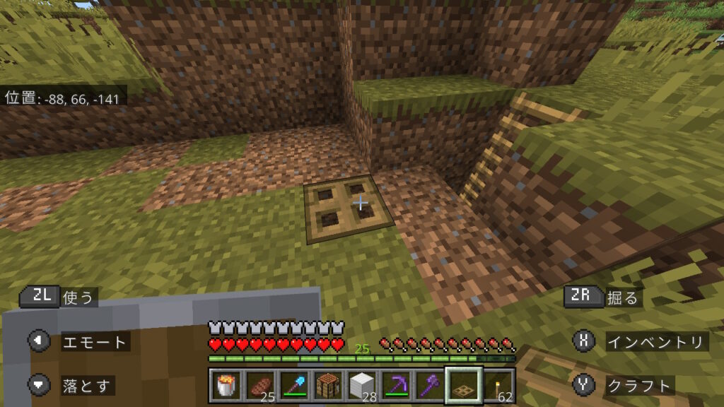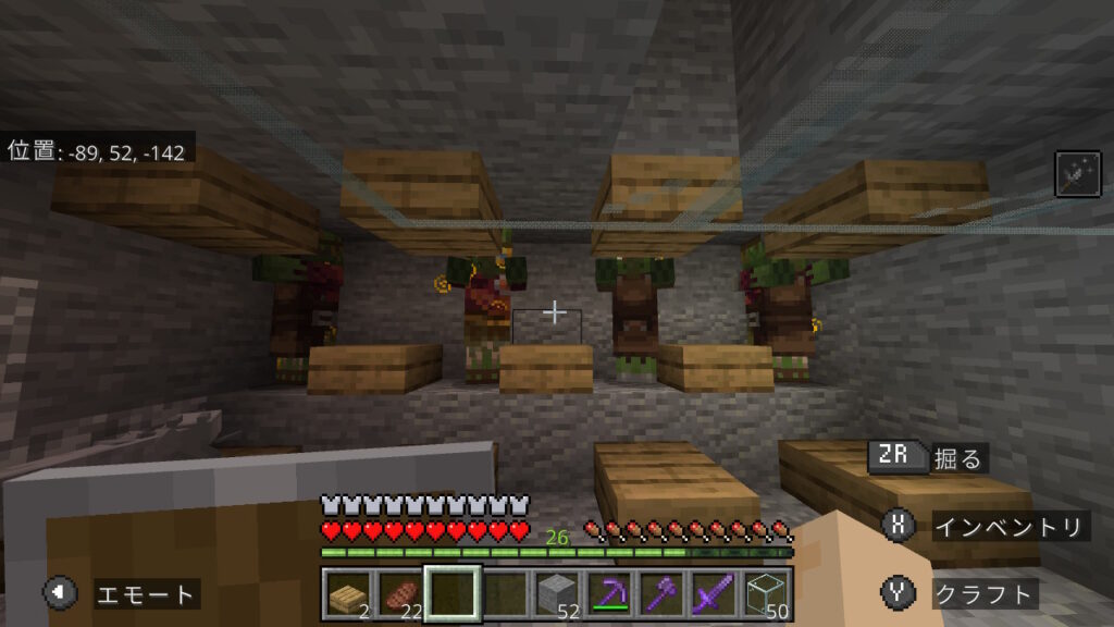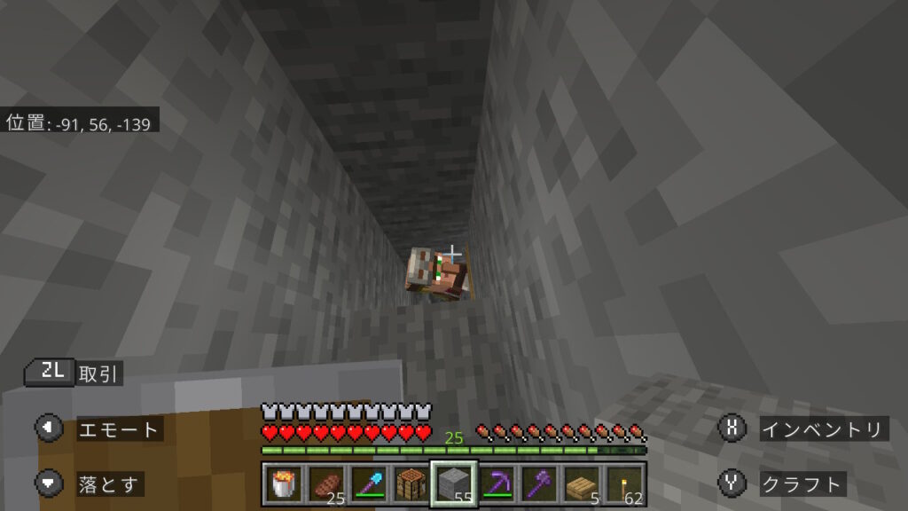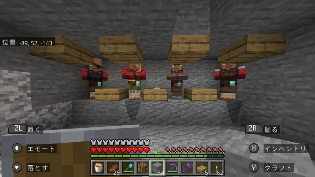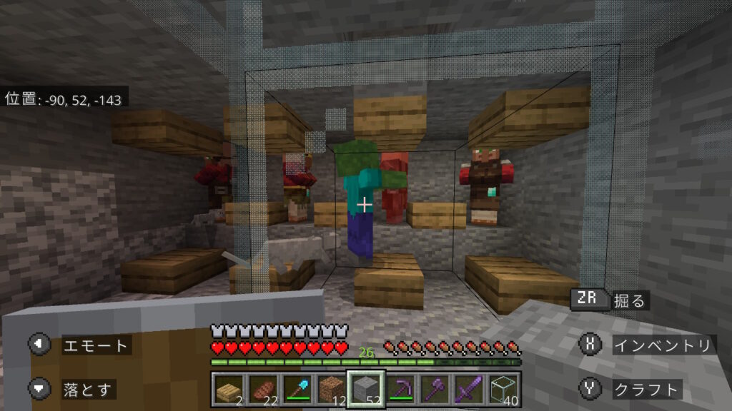 村人ゾンビの治療中に、日光に当たると死んでしまうので屋根のある場所を作りましょう。私は今回地下に作ります。