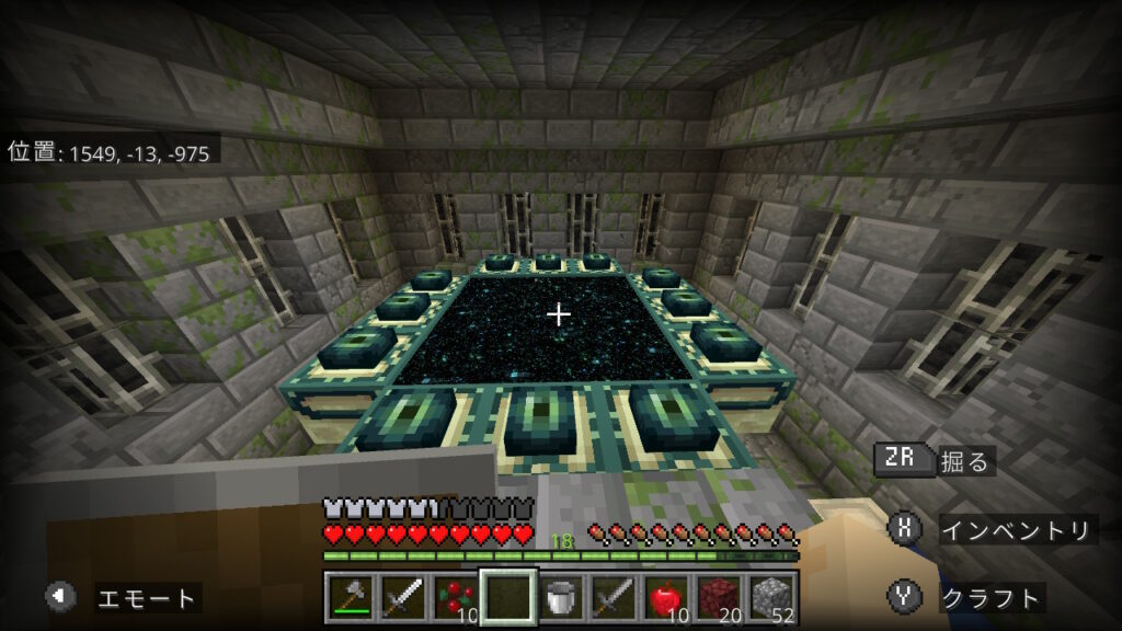 再度エンド要塞探しに出かけます。ここからスクショを撮る余裕がなかったのですが、珍しく海の真ん中にエンド要塞があるパターンでした。ということでエンド要塞に入りました。