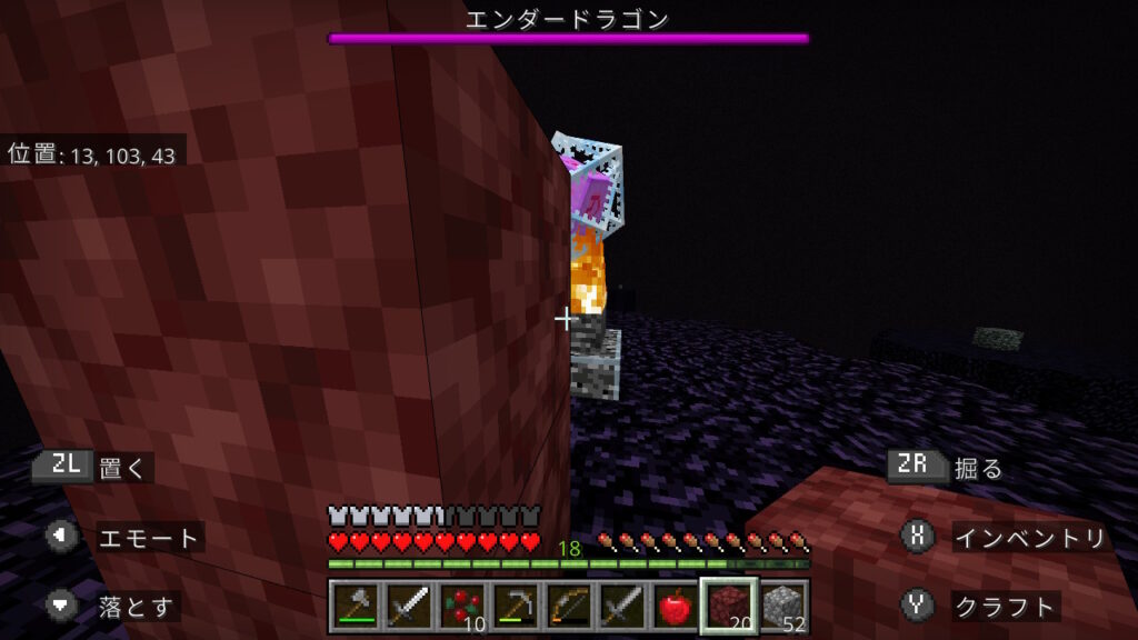 ベッド爆破は難しくてできないので、普通にエンドクリスタルを壊して倒すことにします。