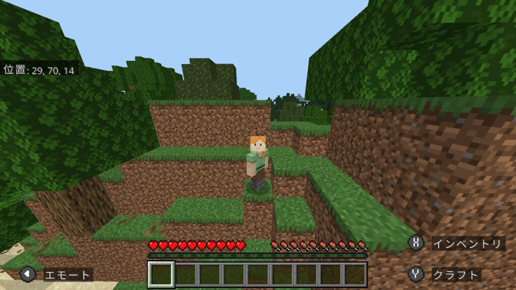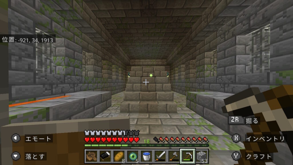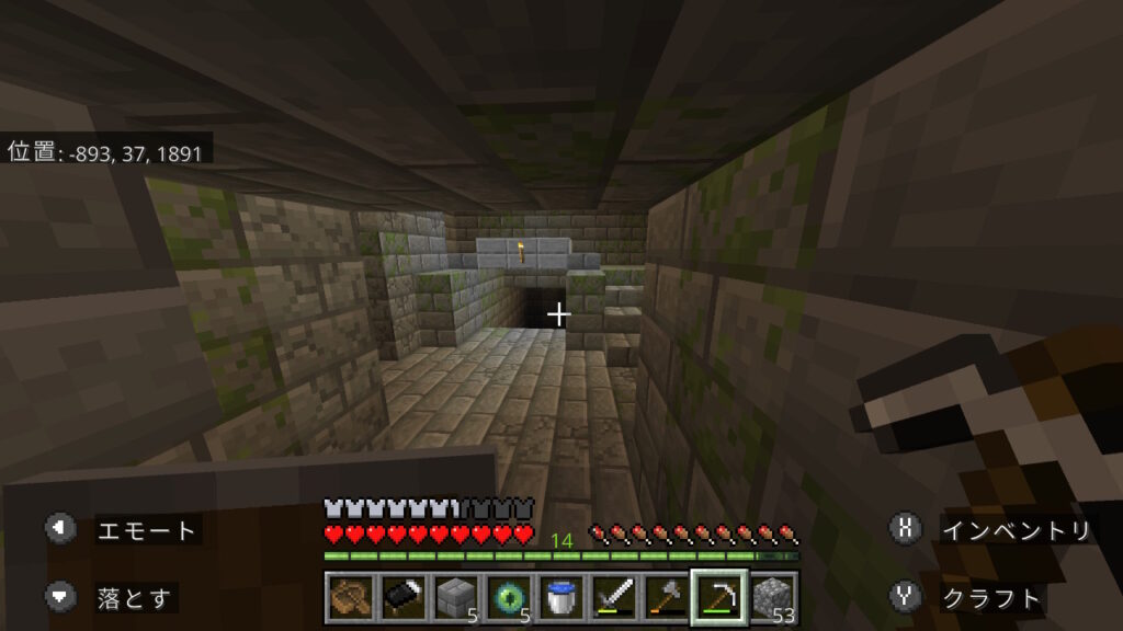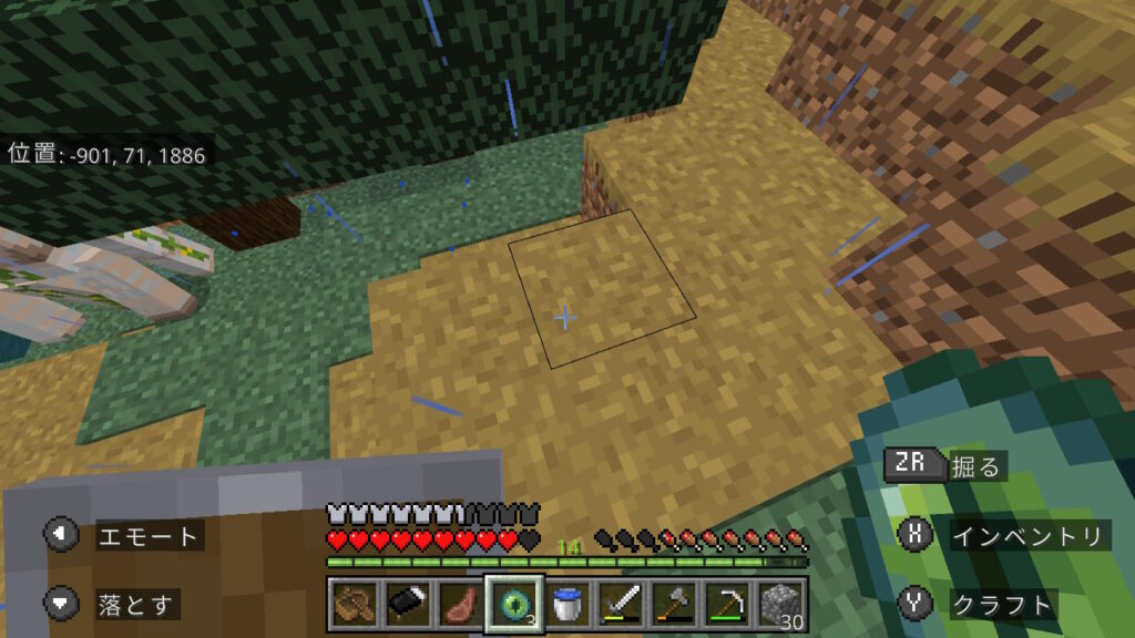 大体この座標0,0に近い位置からだと、村の下にエンド要塞があるはずです。詳しい生成の検証は別で行なっているので、そちらもご覧ください。