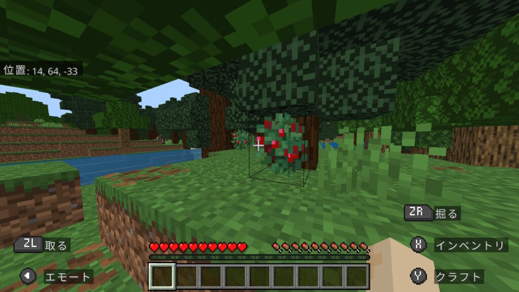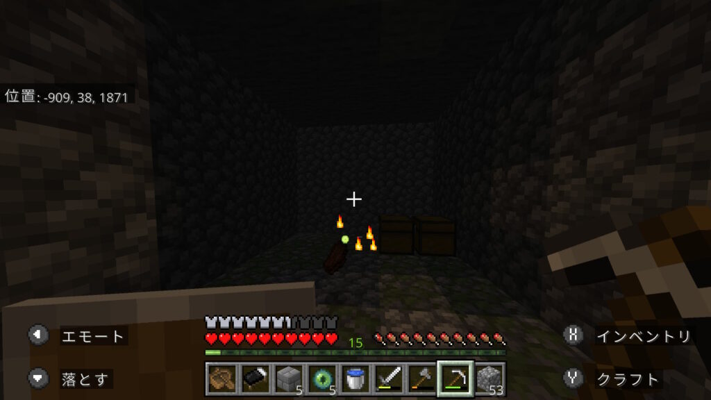 森は村がないので本当は嫌なんですが、今回は最初から村は見つかればラッキー、なければ鉄だけ掘ってネザーへ行くつもりだったのでそのままスタートです。