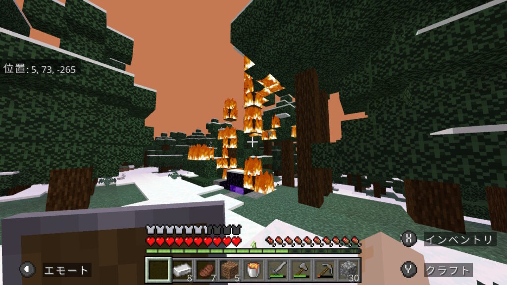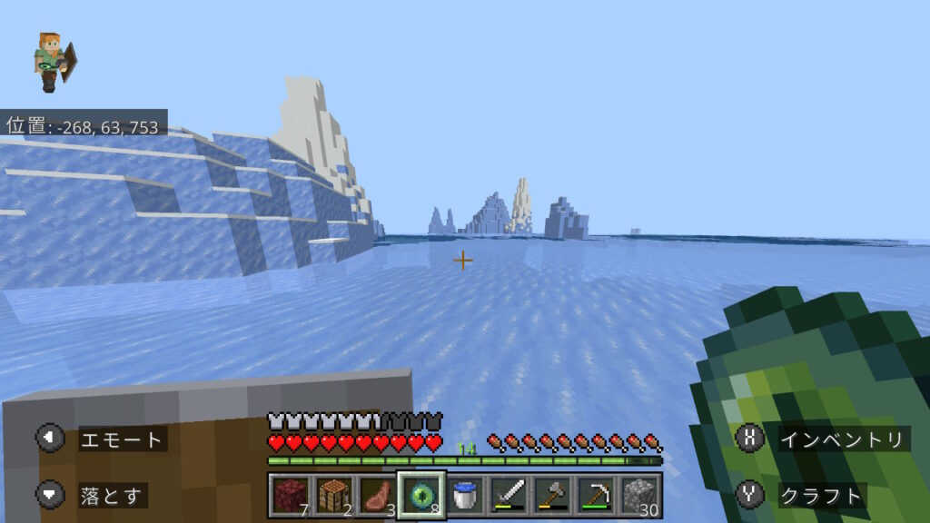 次は先ほど見えていた青森へ向かいエンダーパールを集めます。