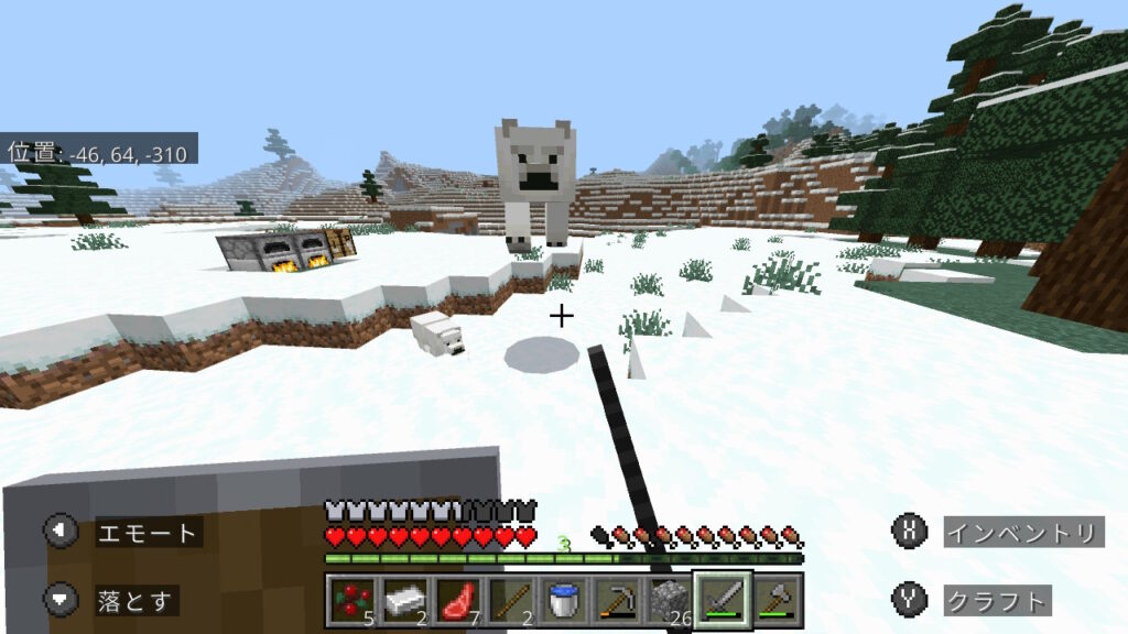 そんな感じで普通にサバイバルしていると、熊さんに襲われます。危うく倒されるとこでしたがなんとか競り勝ちました。