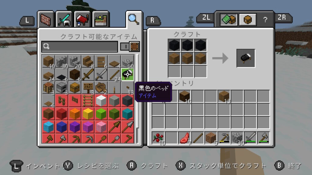 合わせて、一旦リスポーン地点固定と夜スキップ用のベッドを作成。