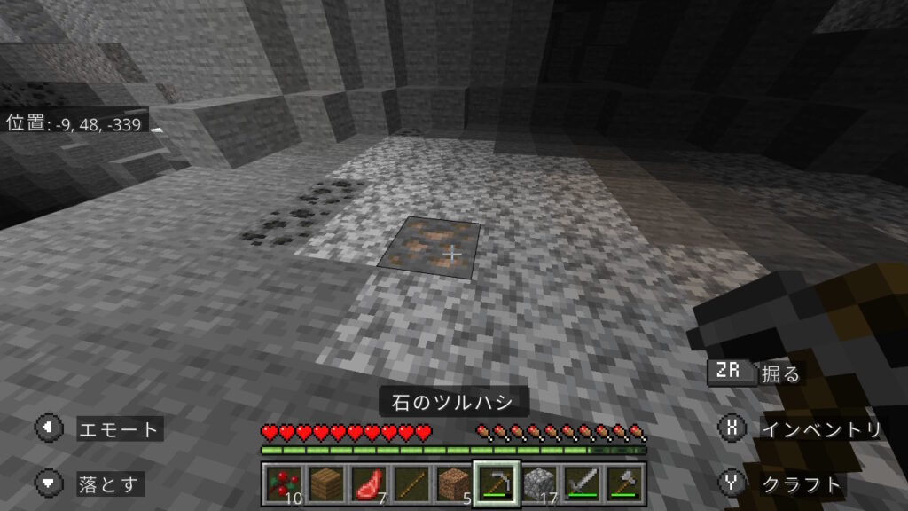近場に鉄がありつつ日光も届きそうな洞窟があったので、ここに一旦潜ります。ここまででおおよそ7分程度。いつもなら村の攻略が終わっているくらいなので、やはり鉄掘るルートは時間的にロスします。