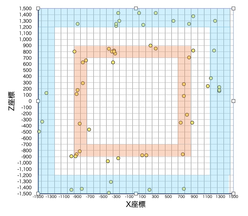 | X,Z座標±1000以内 | X,Z座標±1000〜1500 | X,Z座標±1500以上 |