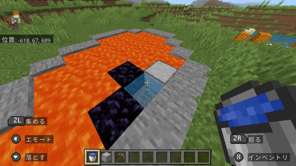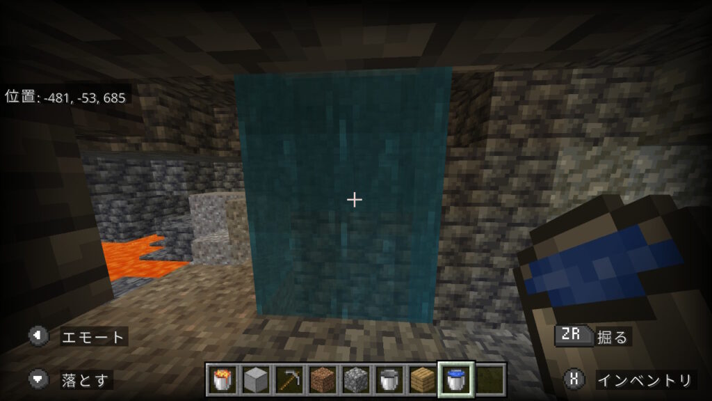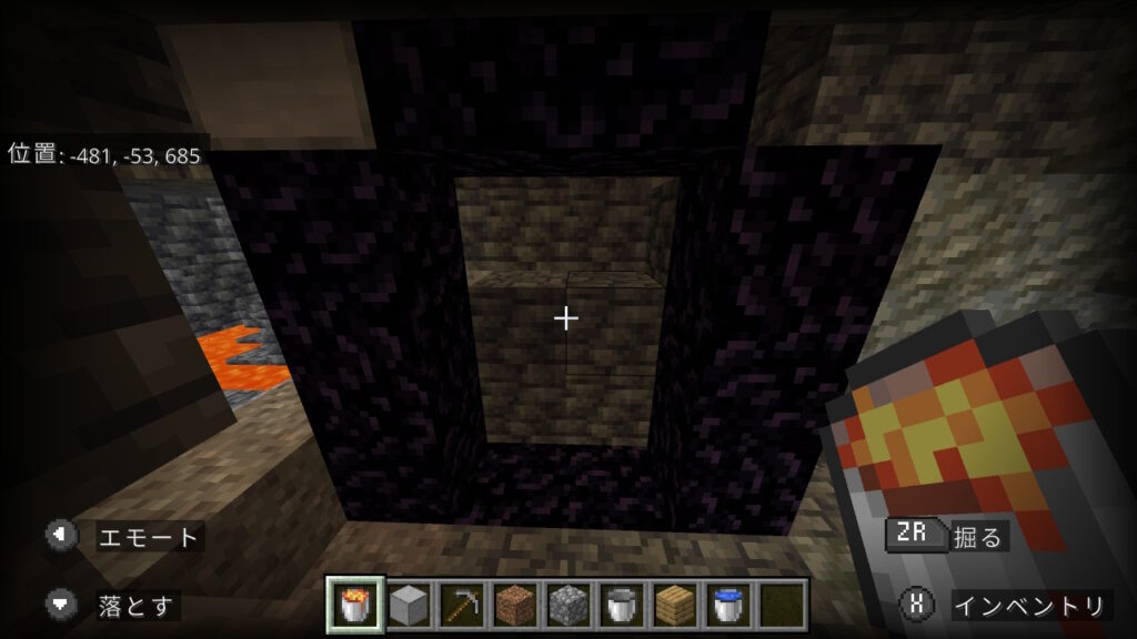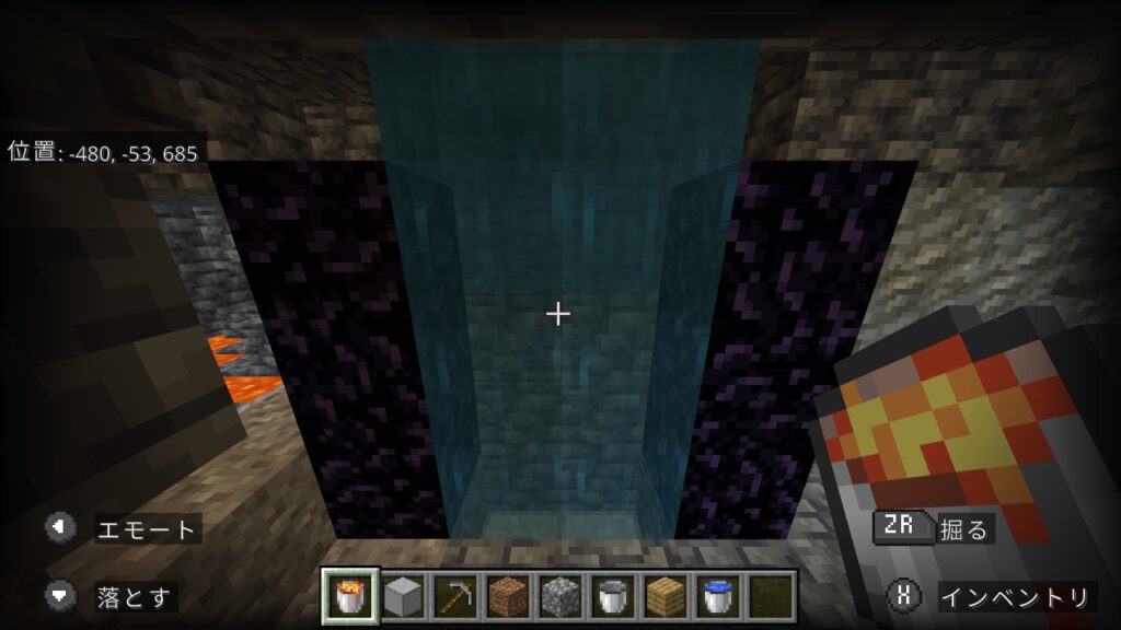 【狭い洞窟】水バケツでのネザーゲートの作成手順