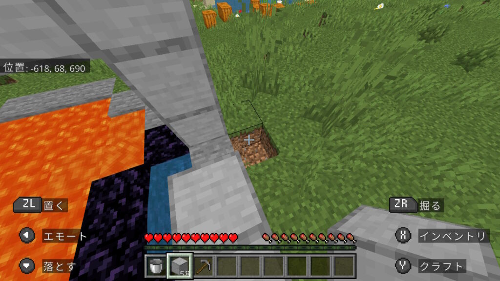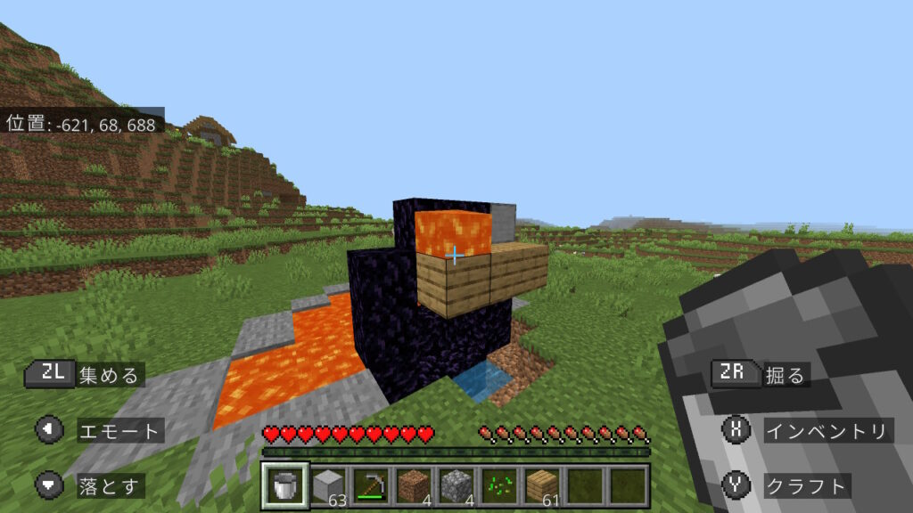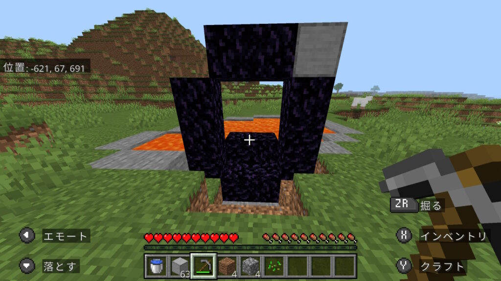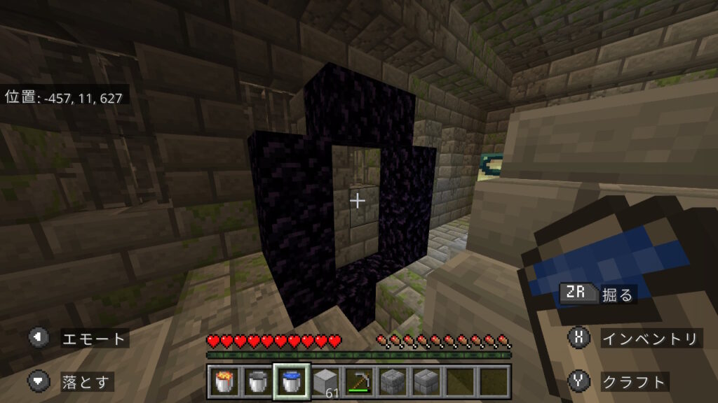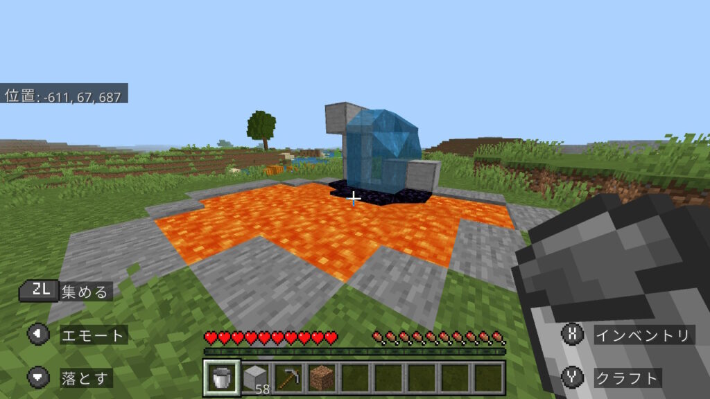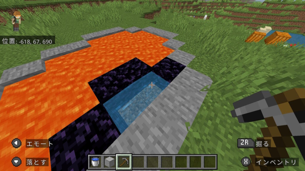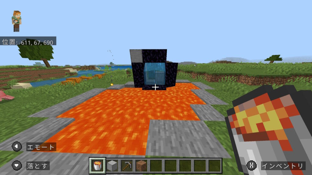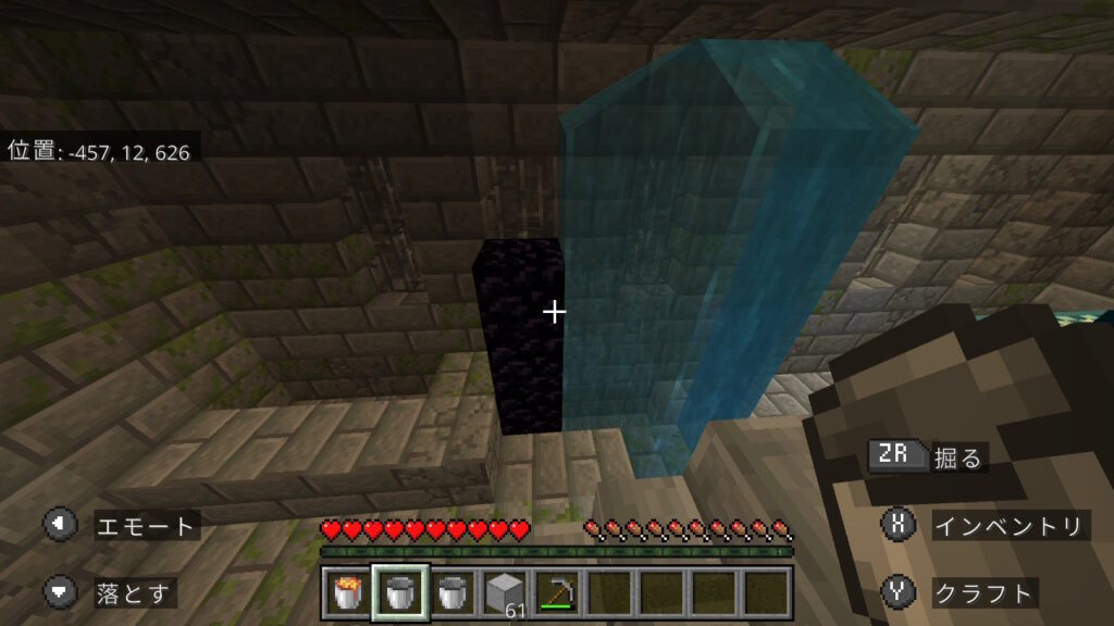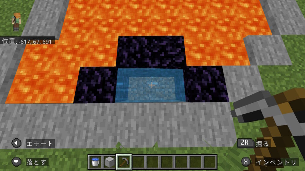 その仕様を活用し、ダイヤなしでもネザーに行ける方法を紹介します。