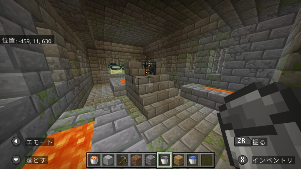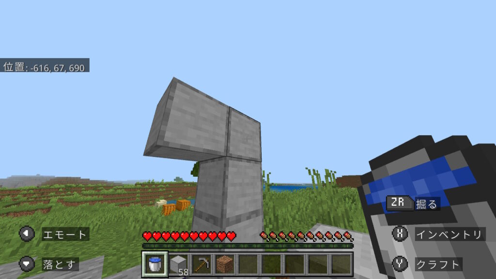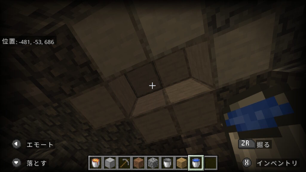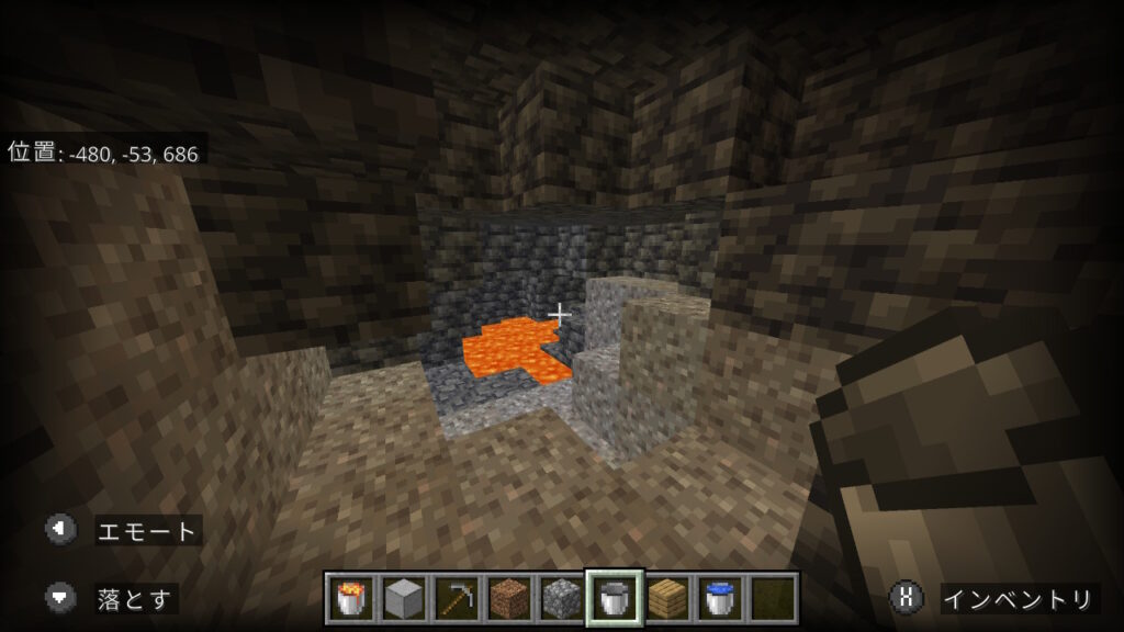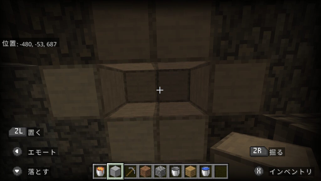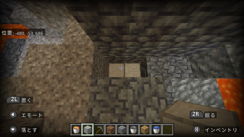 今回はこの、上も下もブロックがあり狭い洞窟で作ります。