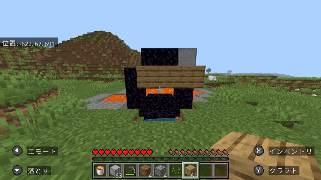 あとは、壁際とエンドポータル下にあるマグマを使って、ネザーゲートを作成するだけです。