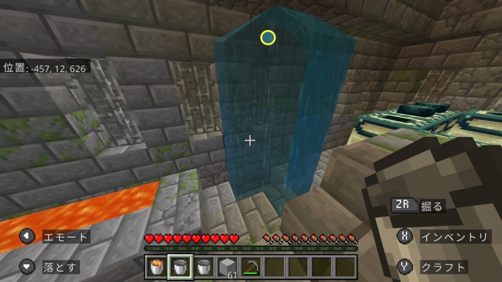 エンドポータルの中のマグマは、画像の位置に立って回収していきます。