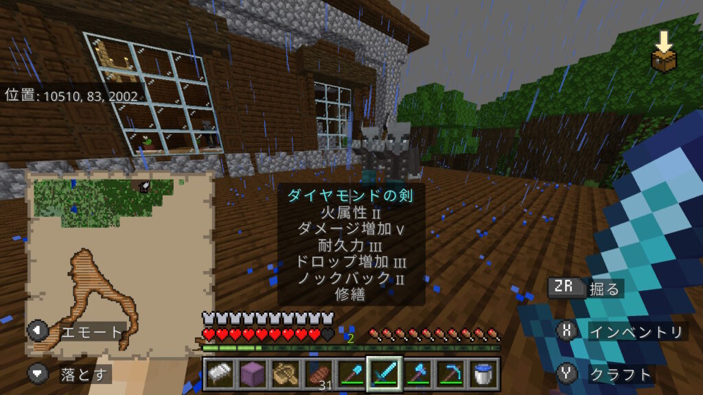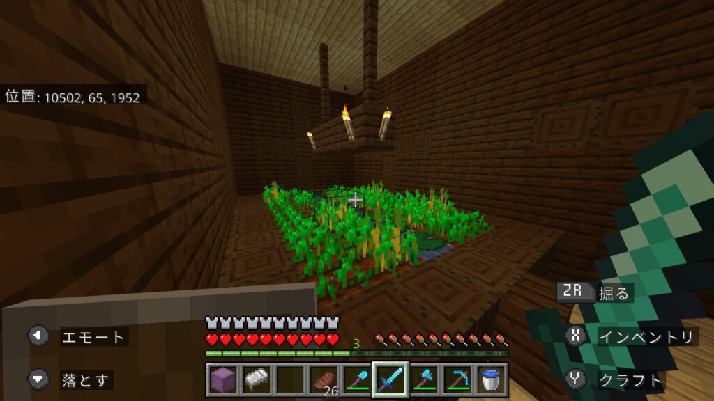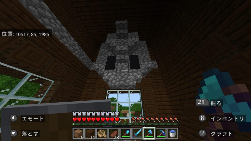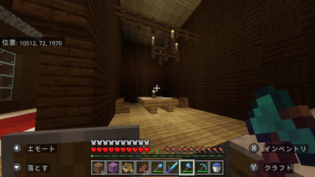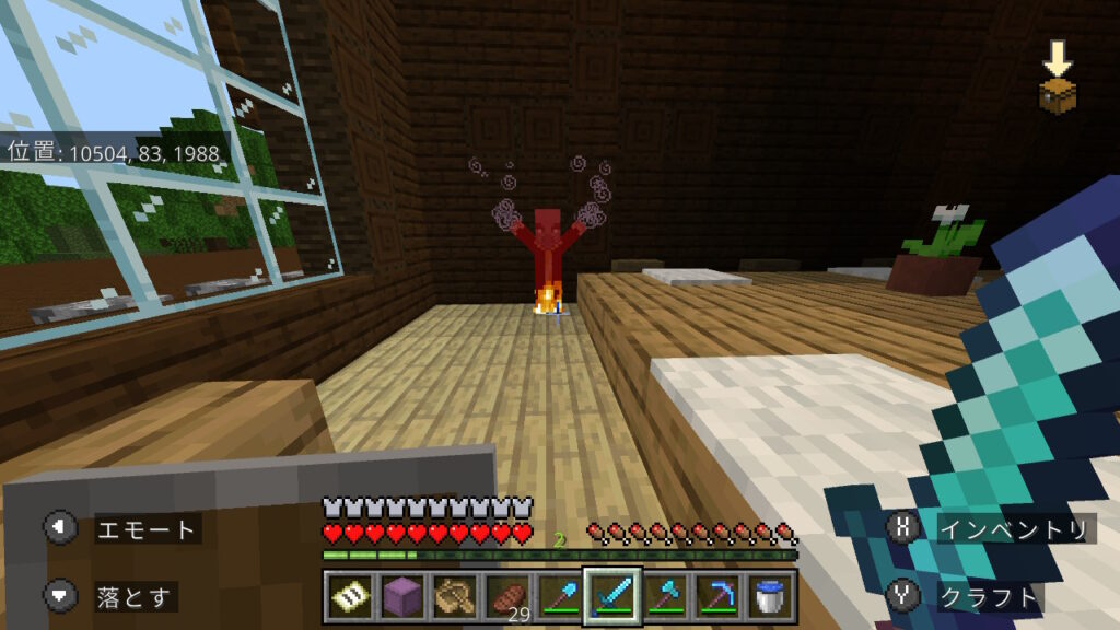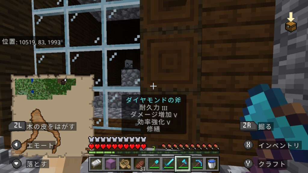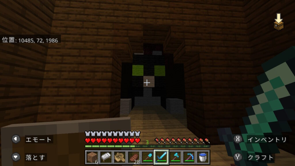 ちなみに彼はヴィンディケーターですね。ノーマルで装備無しだと斧一発でハートが6.5持っていかれるとんでもない腕力の持ち主です。ダイヤフルエンチャントでも余裕でどんどんハートが減ります。恐ろしいです。