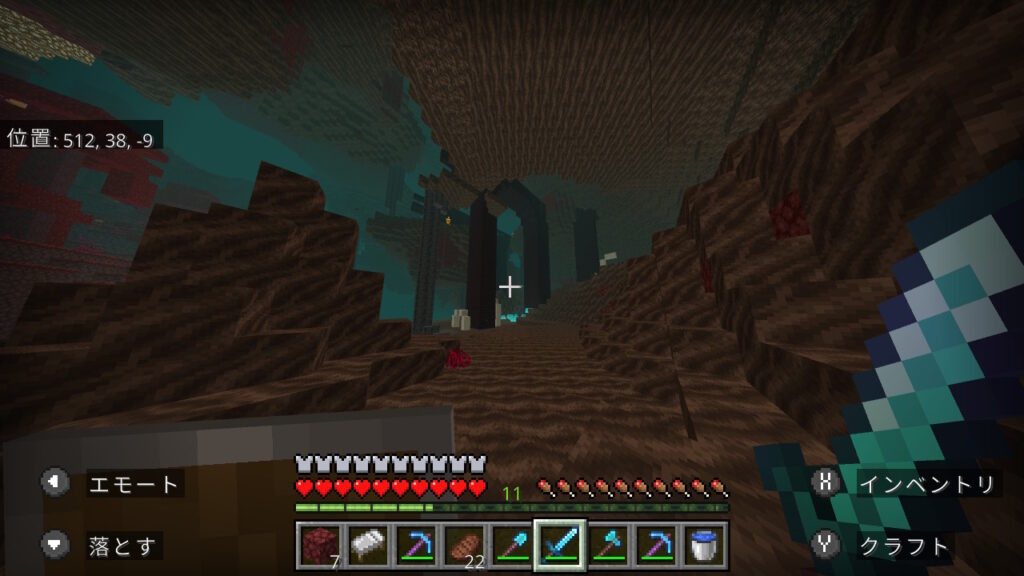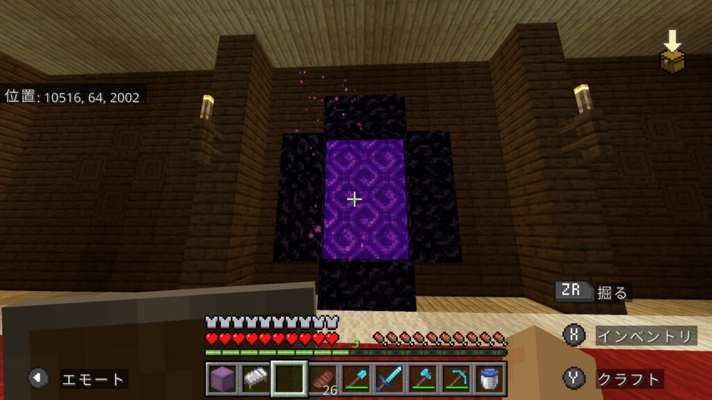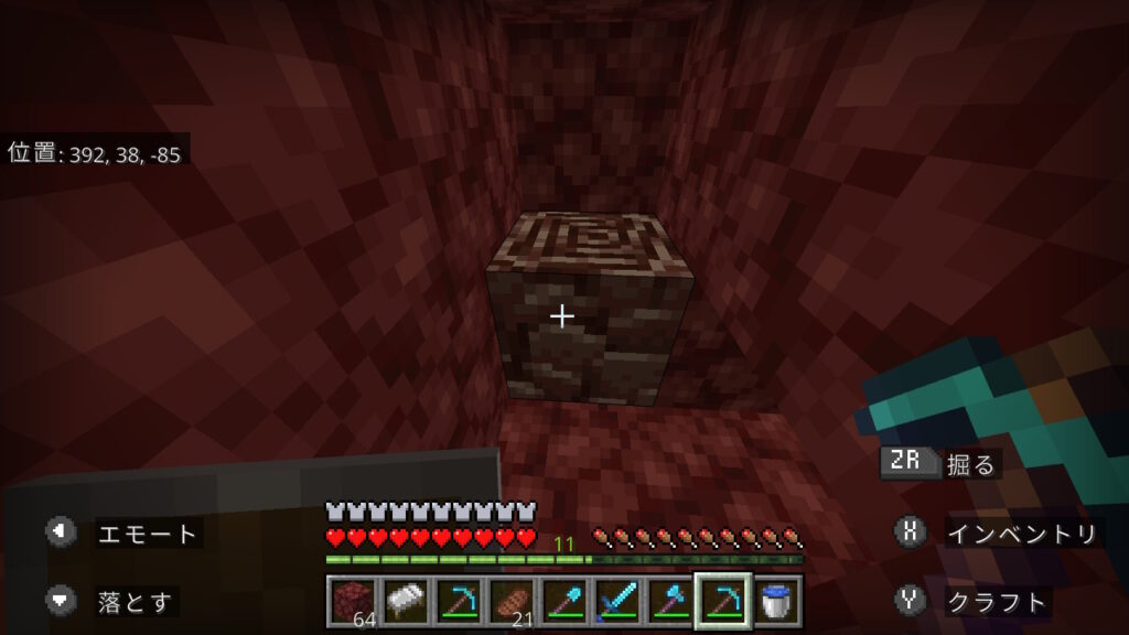 とはいえネザーでも1500ブロックくらい移動しなければなりません。慎重に帰ります。