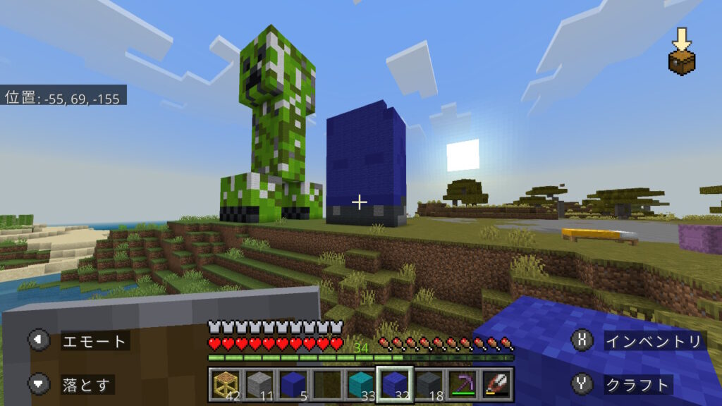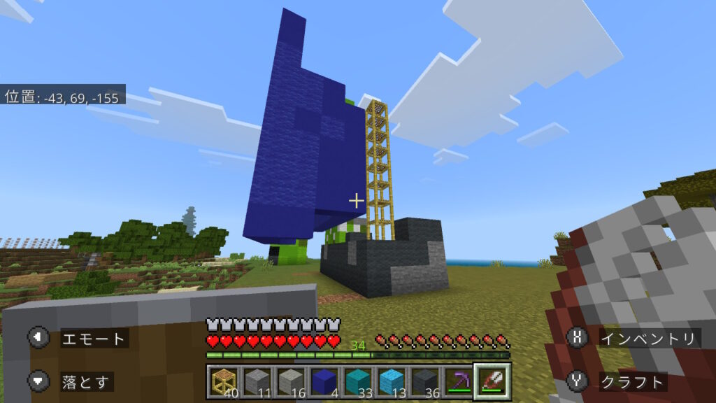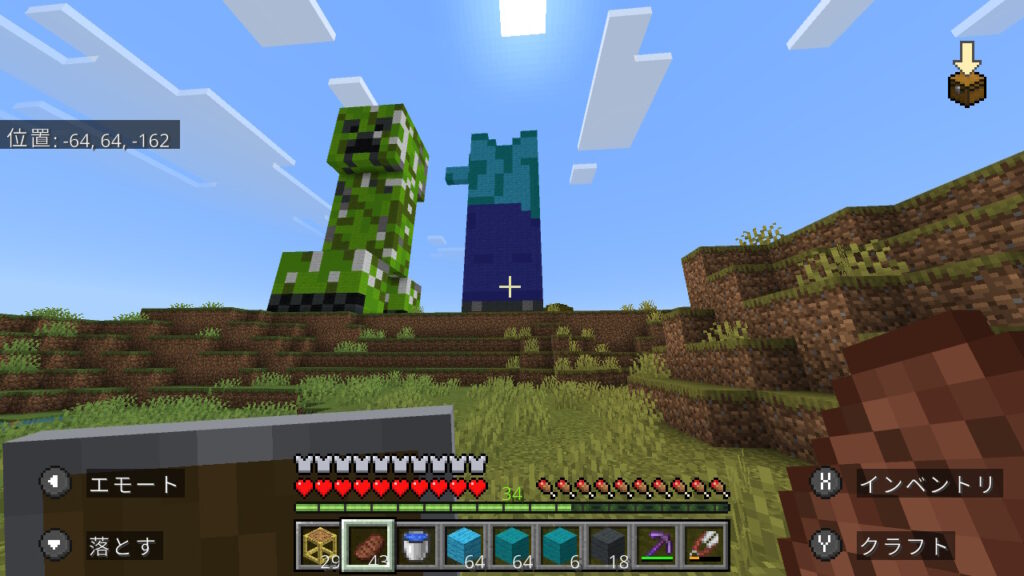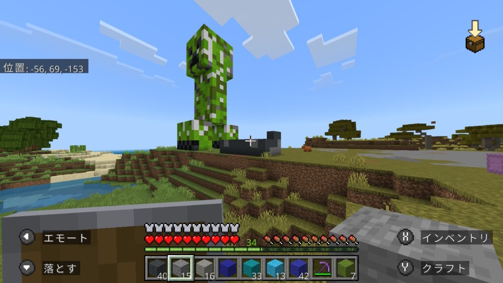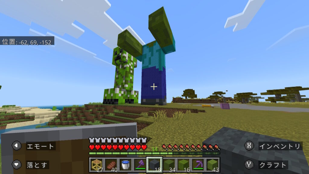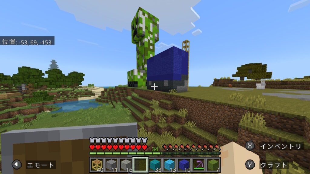 ここまで作ったところで、作成場所が前すぎることに気づきました。クリーパーと並んでいて欲しいですからね。