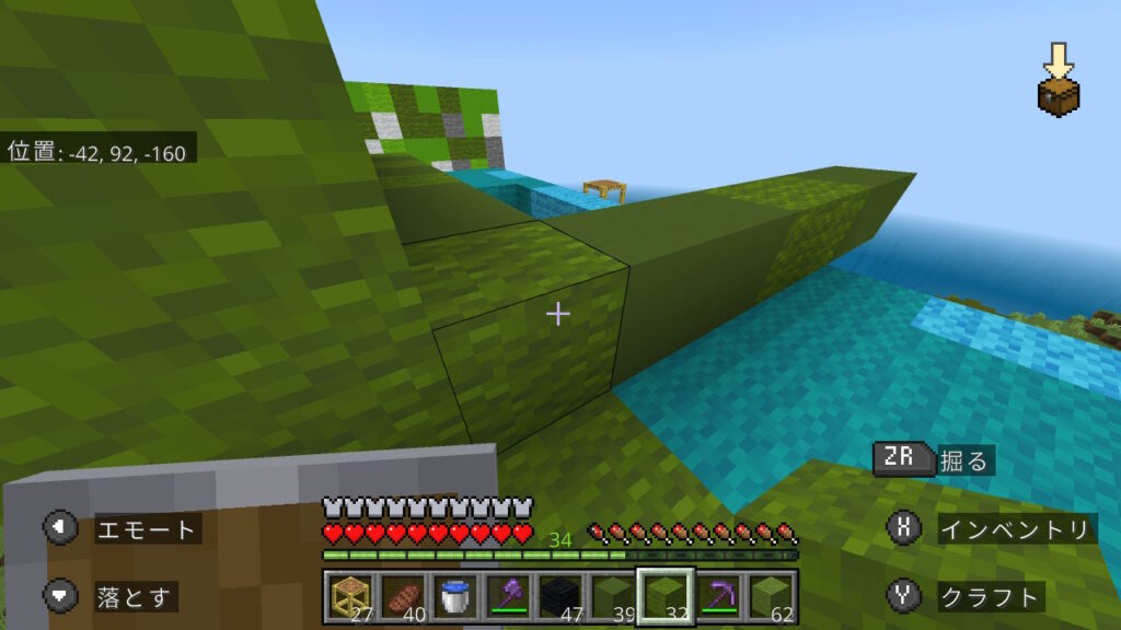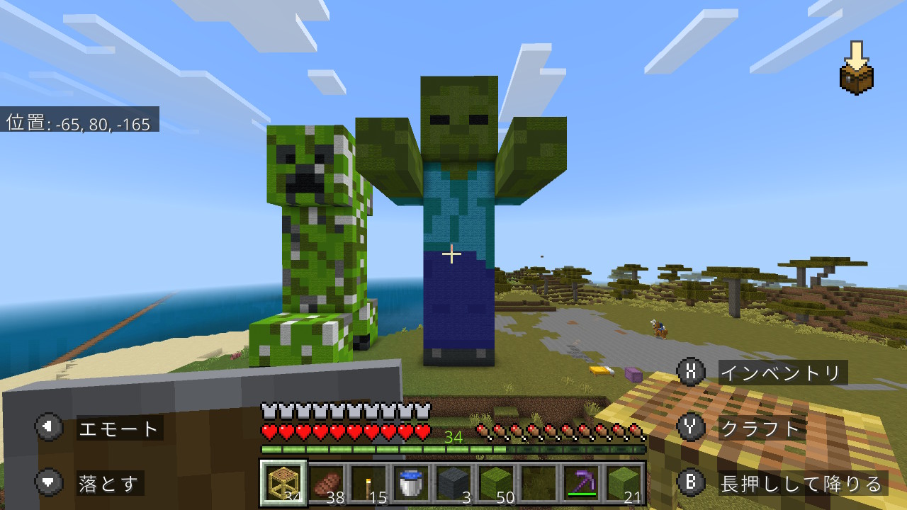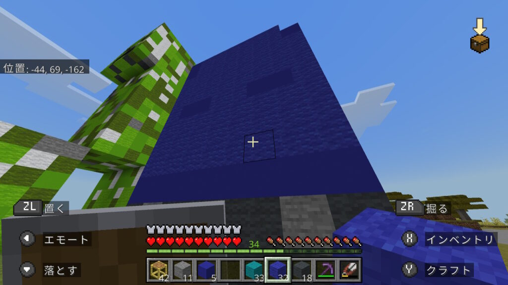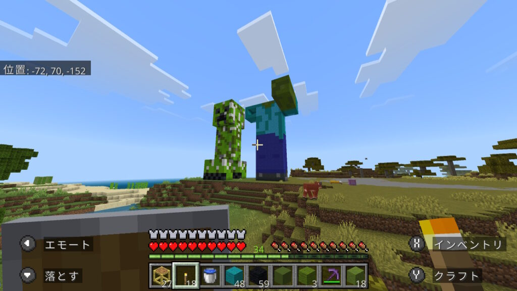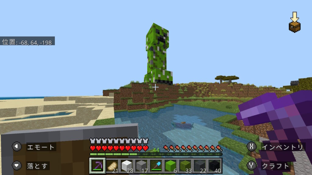 ここまで作ったところで、作成場所が前すぎることに気づきました。クリーパーと並んでいて欲しいですからね。