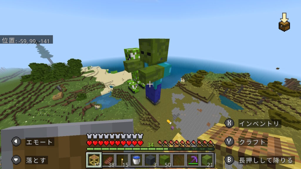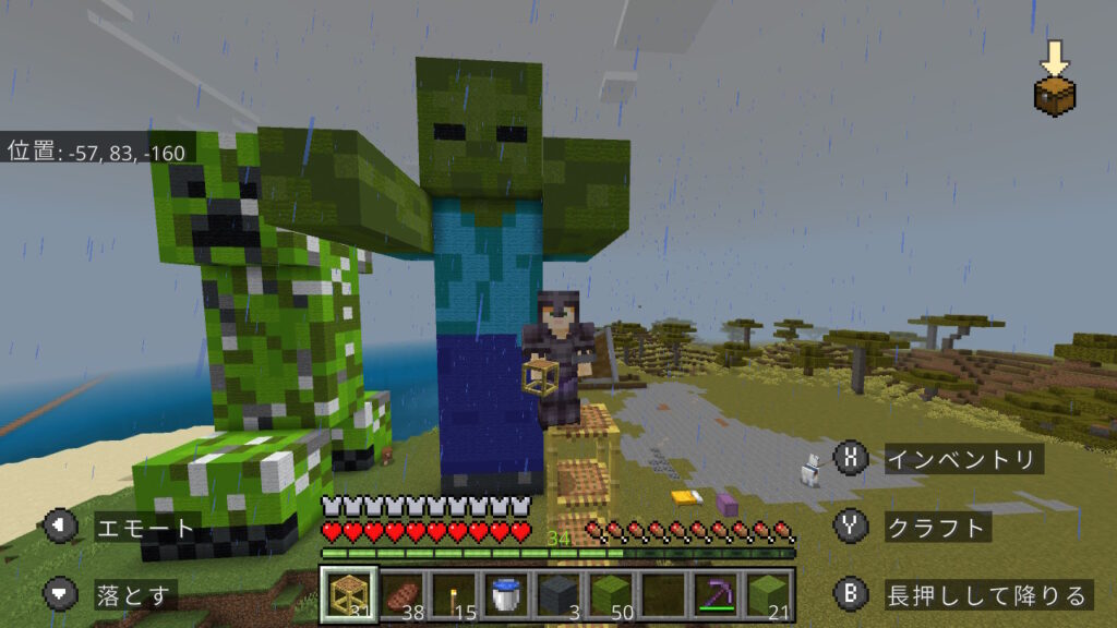 自動羊毛回収機があれば意外と簡単に作れますので、ぜひ皆様の拠点にも巨大ゾンビを迎えてあげてください!