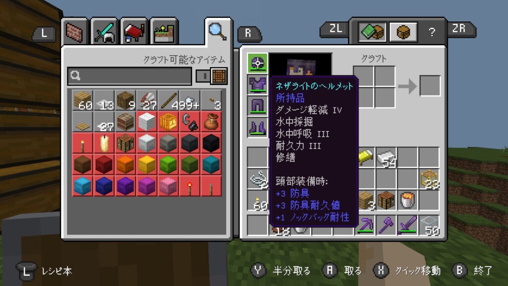 基本的には後ほど説明するエンチャントがないと、掘る前に呼吸が出来なくなってしまうので、よほどの事情がない限りは後回しにしましょう。