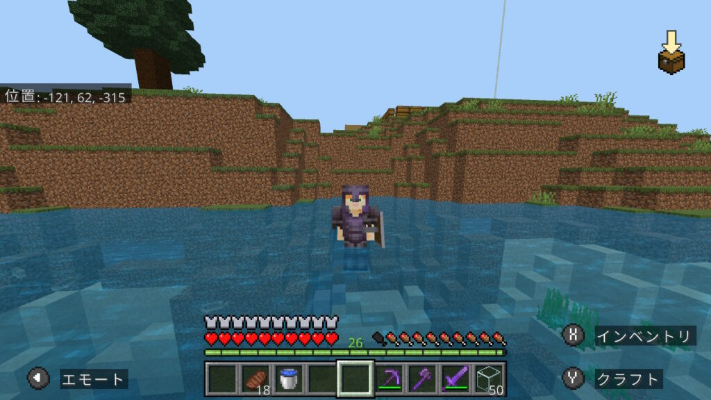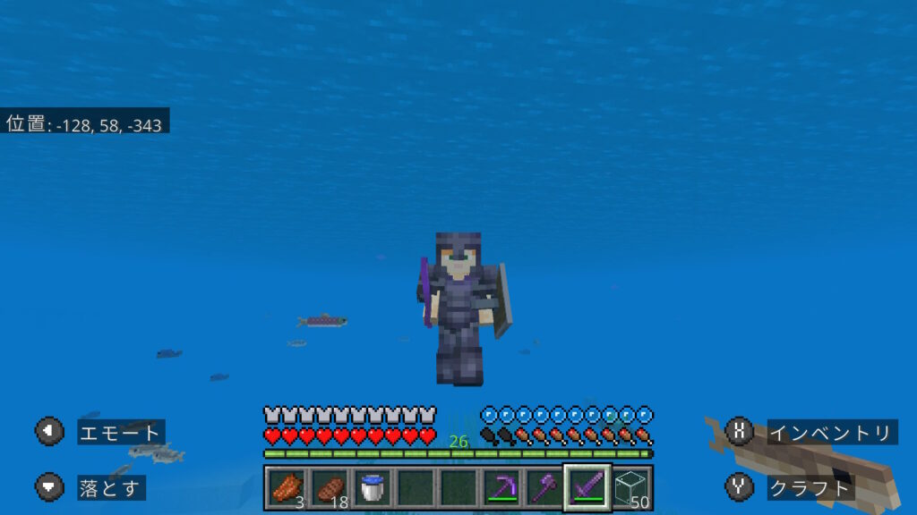 マイクラでは、水の中に入るとそのまま沈んでいきます。