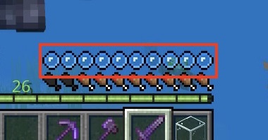 水中に潜っている時は、満腹度メーターの上に泡のマークが出現します。