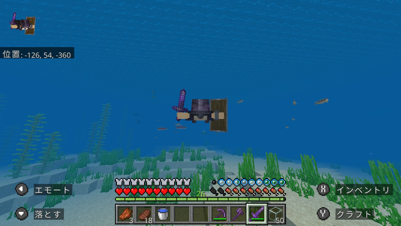 実は私も最近まで、泳ぎ状態だと視点変更で方向を変えられることと、水中呼吸のエンチャントで溺れダメージを軽減出来ることを知りませんでしたので、皆様が快適に水中で暮らせるようになると嬉しいです!
