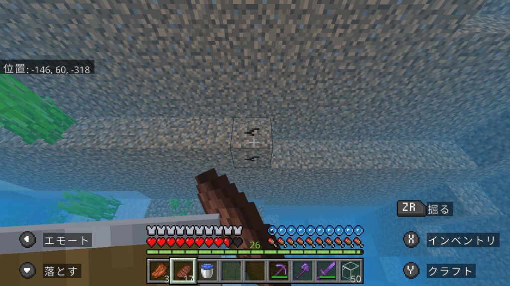 窒息のダメージは1秒ごとにハート1個分のダメージなので、泡マークがなくなる前に急いで呼吸できる場所に戻りましょう。