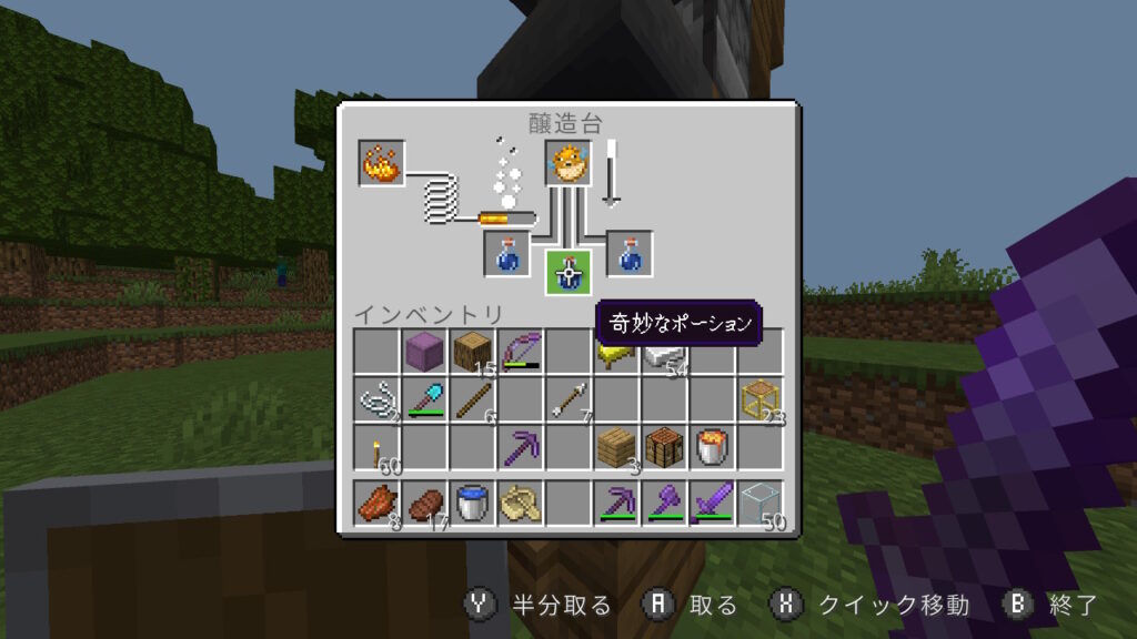 エンチャントがまだ出来ないよーて方は、水中呼吸のポーションを作りましょう。